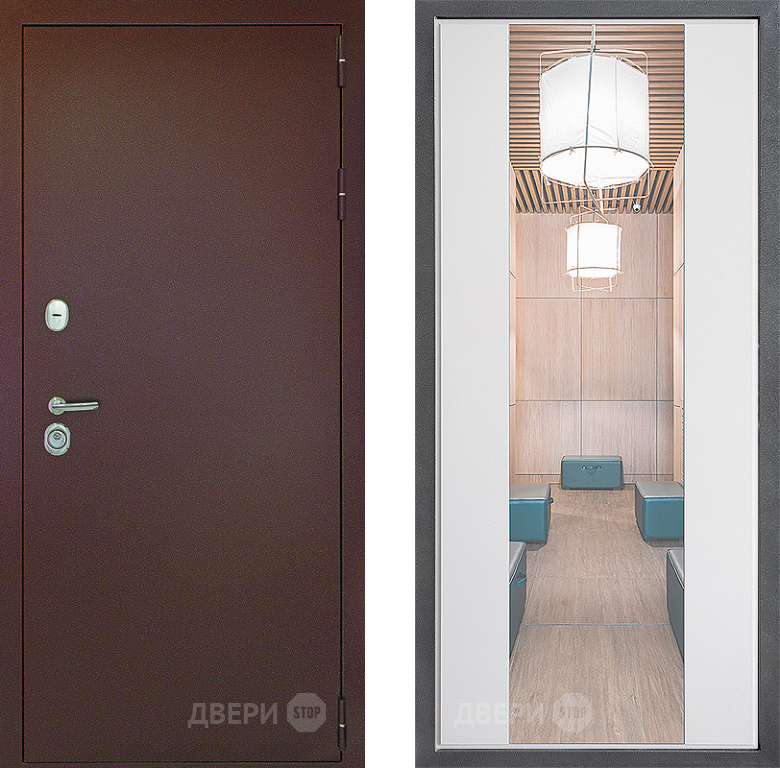 Входная Дверь Дверной континент Рубикон Медь Дизайн ФЛЗ-1 Зеркало Белый софт 860x2050 мм