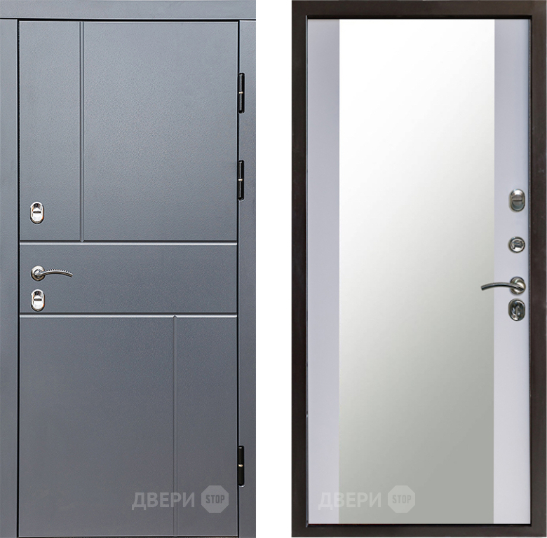 Входная Дверь Престиж TERMO с терморазрывом Горизонт Грэй Зеркало Белый софт 860x2050 мм