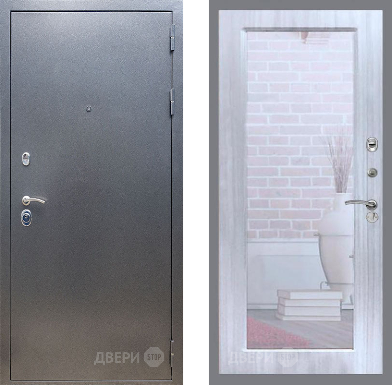 Входная Дверь Рекс (REX) 11 Зеркало Пастораль Сандал белый 860x2050 мм