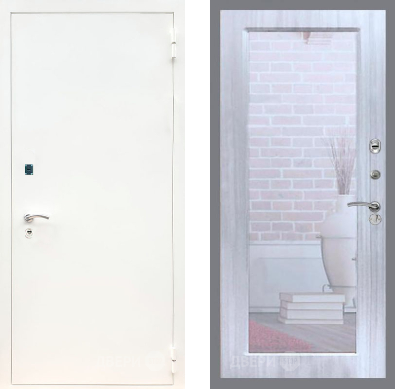 Входная Дверь Рекс (REX) 1А Белая шагрень Зеркало Пастораль Сандал белый 960x2050 мм