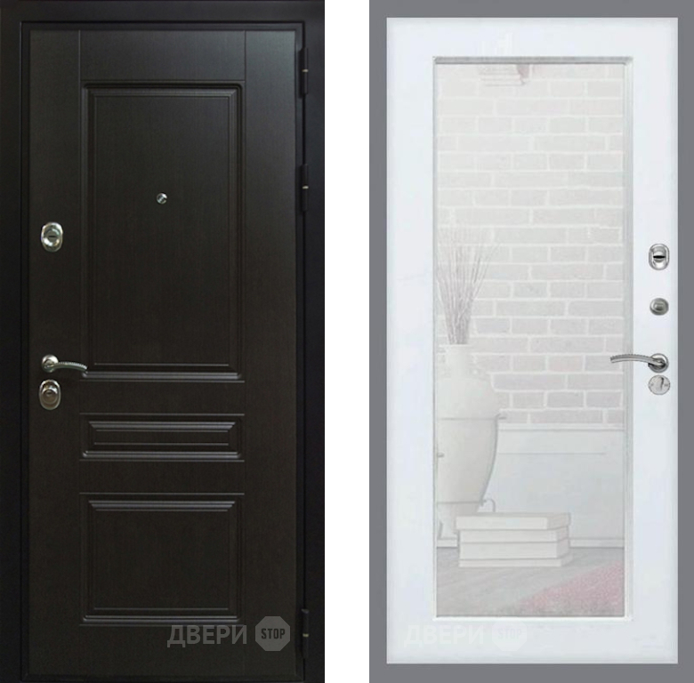 Входная Дверь Рекс (REX) Премиум-Н Зеркало Пастораль Белый ясень 860x2050 мм