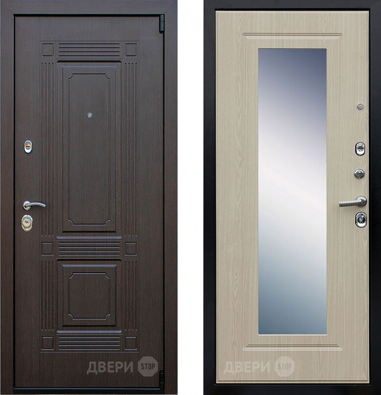 Входная металлическая Дверь АСД Викинг с зеркалом Белёный дуб в Краснознаменске 860х2050 мм